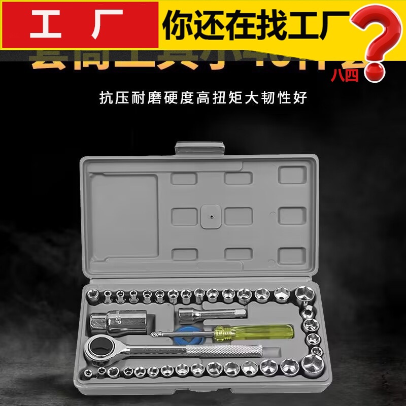 ソケットレンチ40点セット自動車オートバイ修理金物工具箱ラチェットレンチ内六角セット