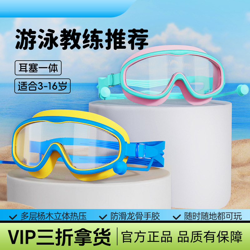 Zhijia 子供用スイミングゴーグル女の子防水防曇高精細大型フレームプロフェッショナルダイビングゴーグル水泳メガネ水泳キャップ機器