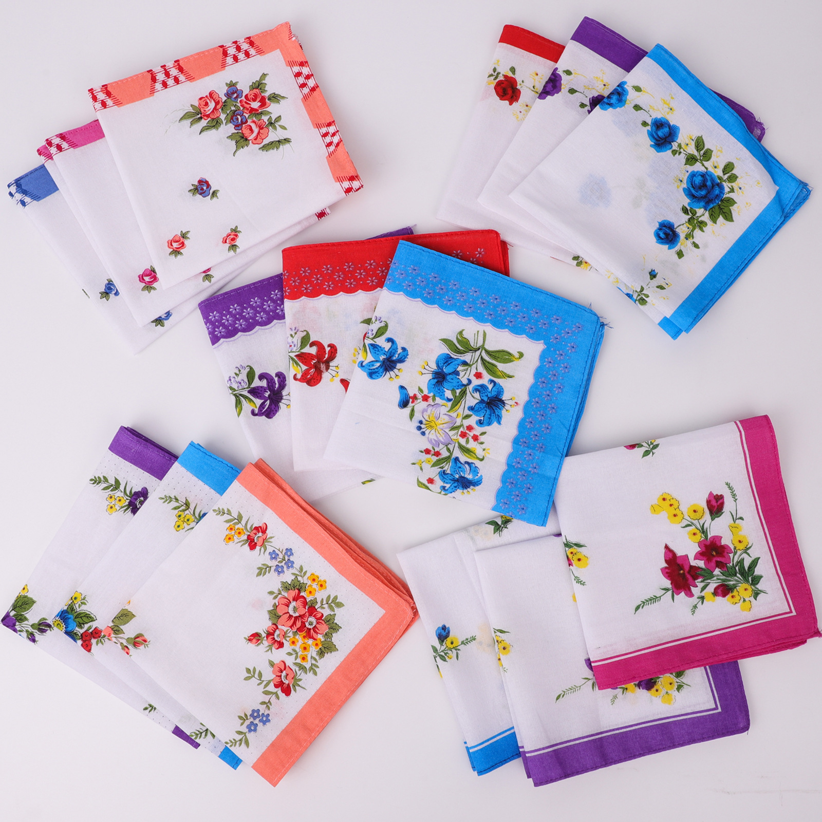 広辺カラー歯辺プリント女性ハンカチ綿旧式ハンカチ純綿女性ハンカチクロスボーダー29cm