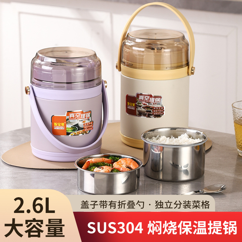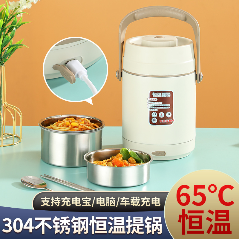 大蒙芽65 ° 恒温提鍋304ステンレス内胆三層保温飯桶車載充電宝携帯
