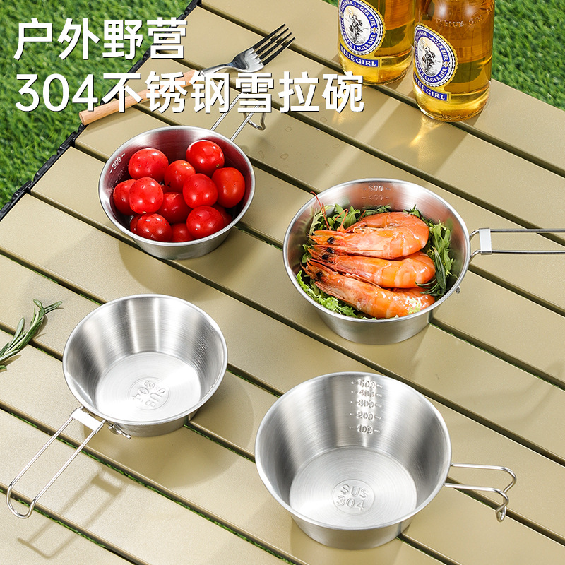 ステンレス製のキャンプ用ボウル、304ポータブル食器、自走式ピクニック用ボウルと箸の収納セット、ライスボウル