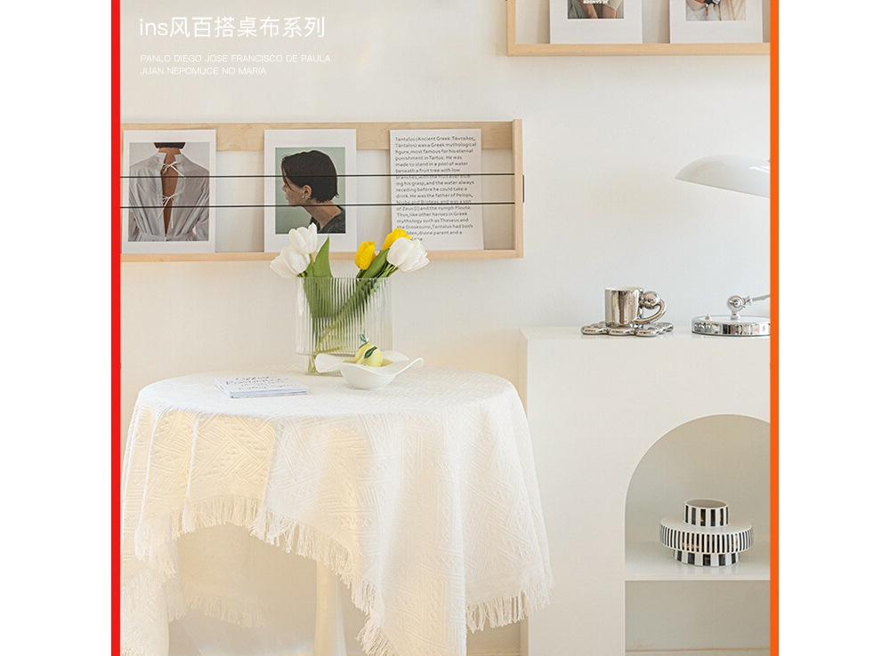 白いテーブルクロスins風北欧円卓角型マット布高級感テーブルテーブルクロスフランス軽贅沢撮影背景布