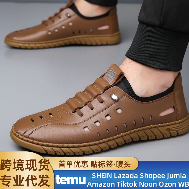 クロスボーダー革靴メンズ 2025 夏の新メンズ通気性アウトドアカジュアルシューズ革靴スリッポン卸売紳士靴