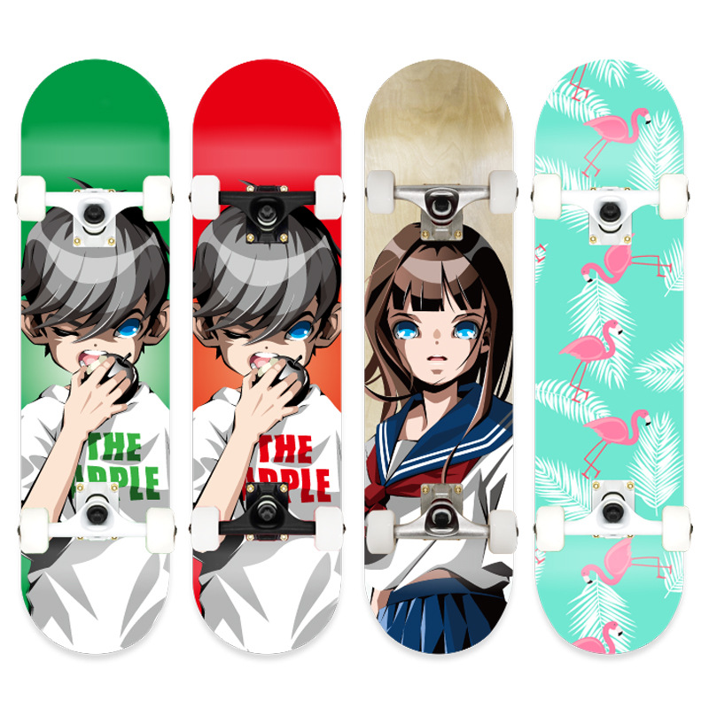 子供80cmスケートボード3108タブレットダブル反り四輪スケートボード楓木skateboard男女両面漫画ボード