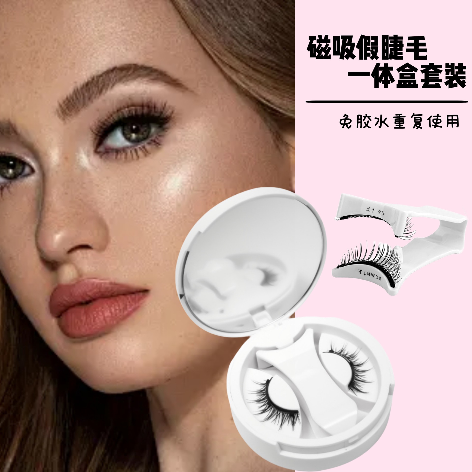 二重層ボックス磁気つけまつげセット Amazon 越境ベストセラー自然な厚さのポータブル接着剤不使用のマグネットつけまつげ