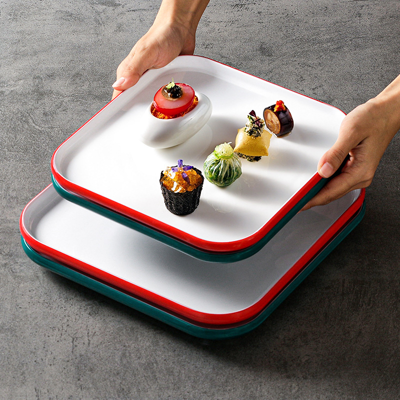 テーブルメラミン食器プレート商業正方形プレートレストランホテルホテル模造磁器皿プレート炒め物冷菜プレート