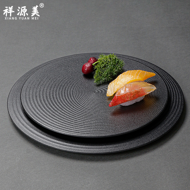 テーブルメラミン食器プレートラウンド寿司プレートクリエイティブ模造磁器刺身プレートバーベキュー鍋プレートディナープレート