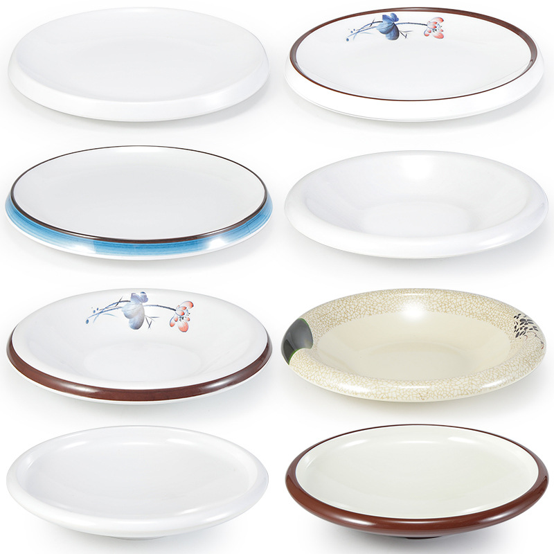テーブルメラミン模造磁器プレート、反転ラウンド深皿スーププレート、ホテル中凹反転調理プレート、ライスプレート