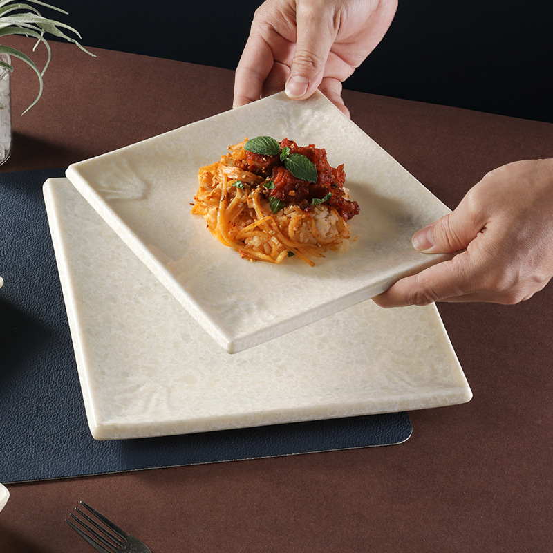 A5 メラミン翡翠正方形プレート、洋食プレート、デザートプレート、模造磁器中国風プラスチック耐衝撃性業務用食器