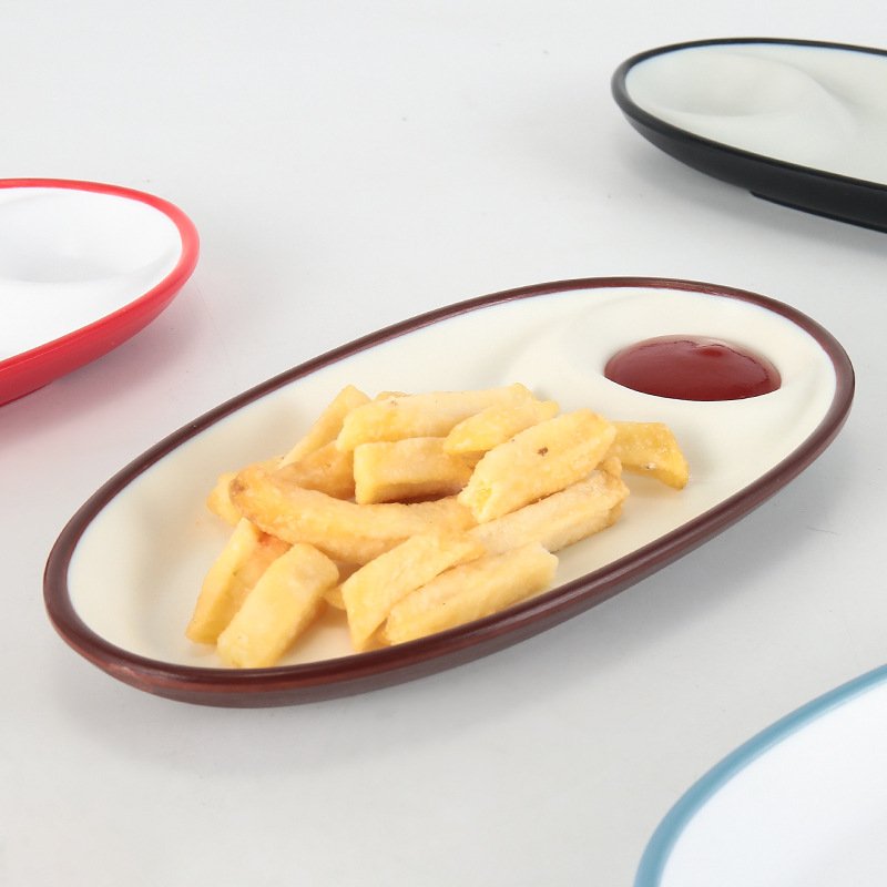 メラミン餃子プレート、業務用レストランスナックプレート、模造磁器餃子プレート、ディッププレート付き、エビプレート、フライドポテトプレート