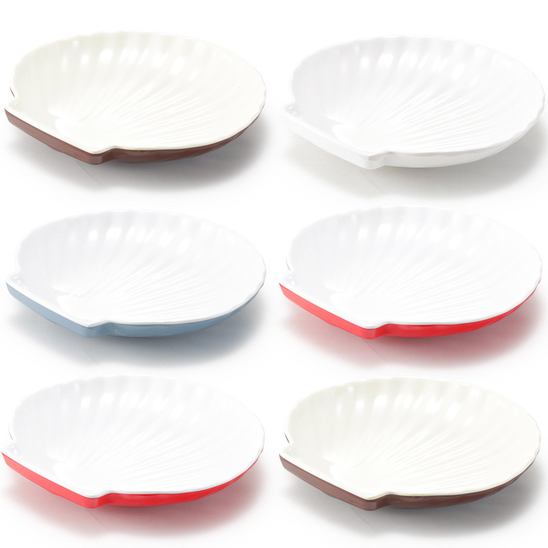 メラミン二色シェルプレート鍋プレートデザートプレートプラスチックスナック冷菜プレートクリエイティブ模造磁器業務用食器