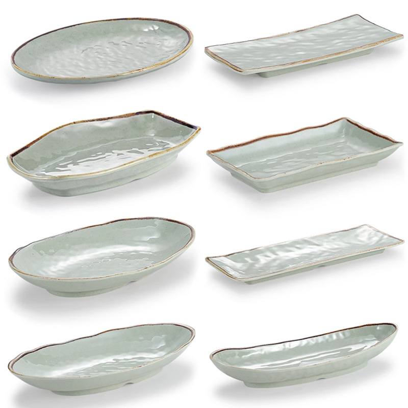 メラミン翡翠プレート、楕円形クッキングプレート、鍋模造磁器食器、ライスロールプレート、バーベキュープレート、プラスチックコールドディッシュプレート