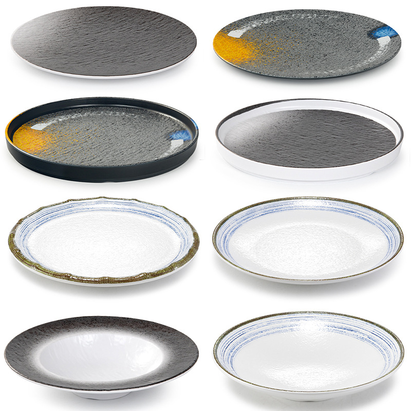 メラミンプレート模造磁器フラットプレートホテルレストランディッシュプレートラウンドトレイ西洋ステーキプレートバーベキューショップ業務用食器