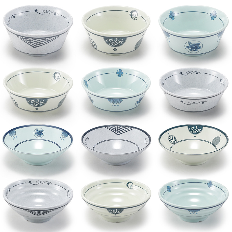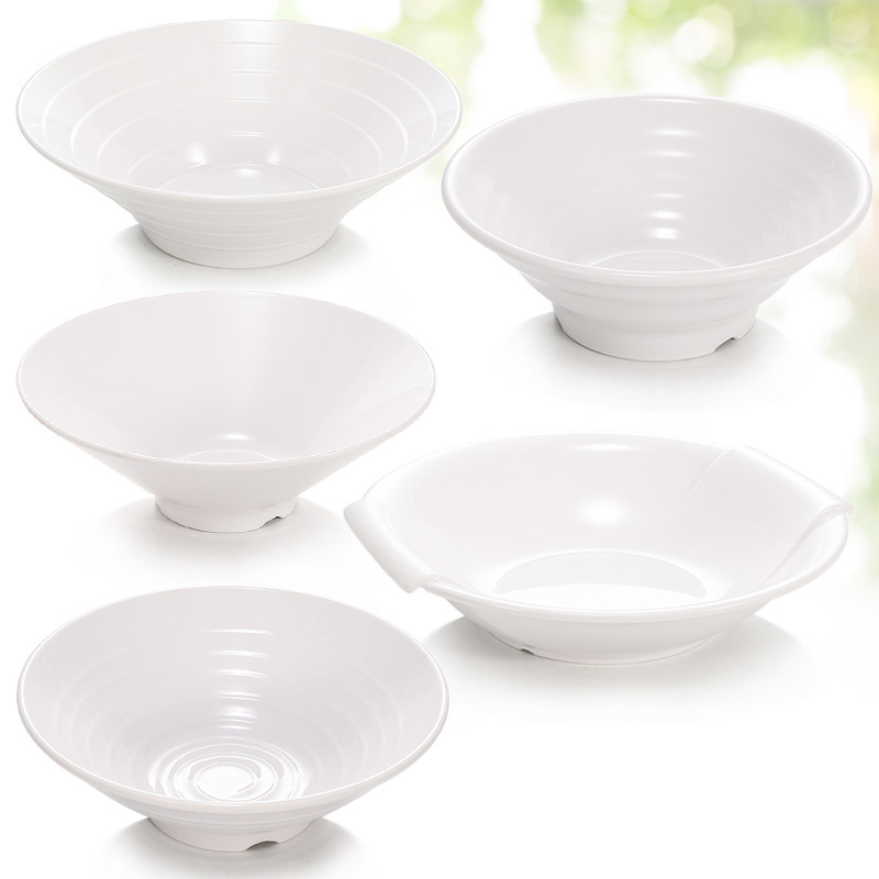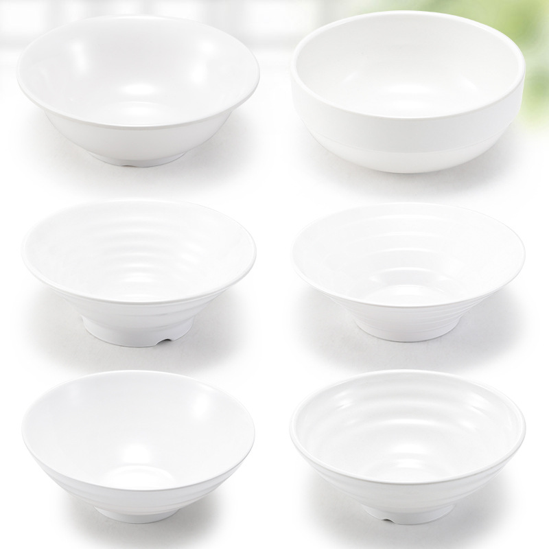 メラミンラーメンの碗は磁器の日本式の白い笠のラッパの碗のプラスチックの野菜の大きい碗の米の線状の碗のスープの粉の碗をまねて商用利用します。
