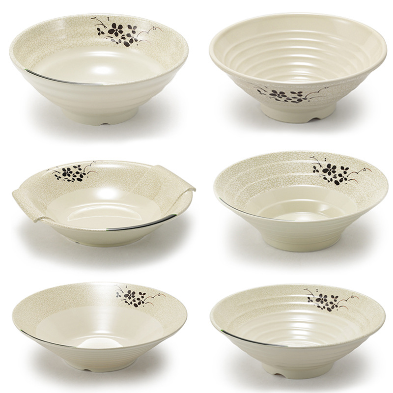 A5メラミン白色リング花日本式味千ラーメン模造磁器麺スープ粉ボウル重慶小面麻辣热ボウルプラスチック