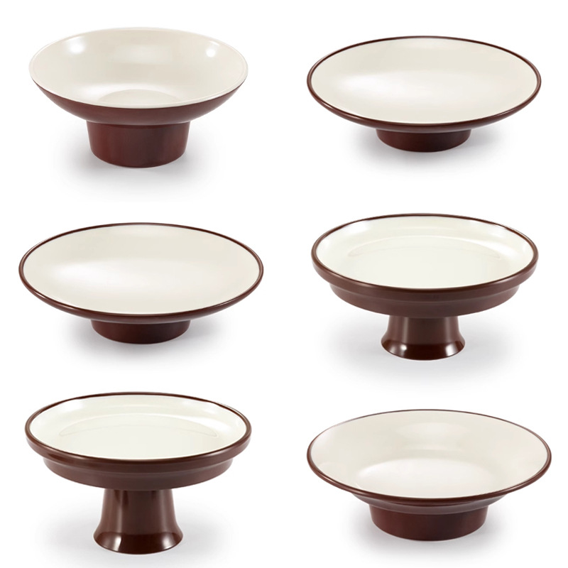 メラミン高足盤ホテルの異形盤の軽食の冷菜盤のデザートの展示盤の商業創意は磁器の食器をまねます。