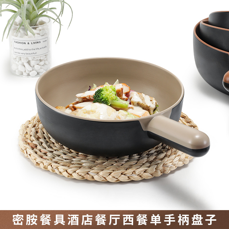 メラミンは陶磁器の碗のホテルの創意料理の碗をまねてハンドルのサラダの碗の粉の碗の日本式の商用のプラスチックの大碗を持ちます。