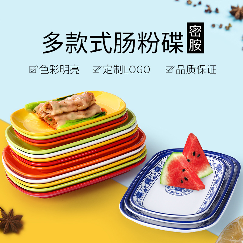 メラミン腸の粉の皿の長方形のプラスチックの皿は磁器の食器の火鍋の店の料理の皿の腸の粉の皿をまねて商売をします
