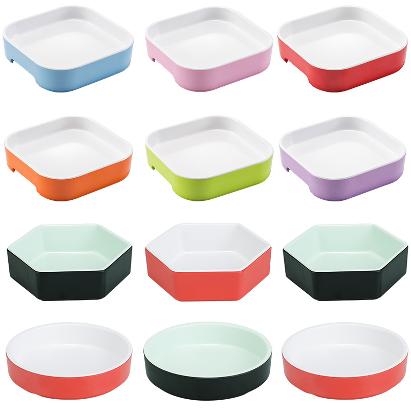 メラミン鍋の皿は磁器のセルフサービスの食器をまねて四角形のプラスチックの食器を重ねます。