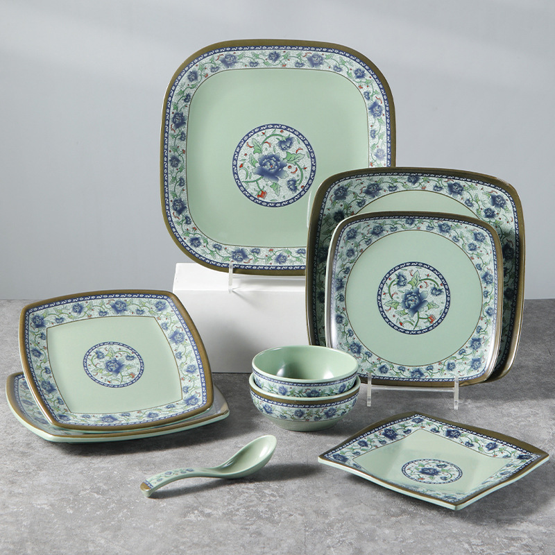 メラミン古色の青花は磁器の四方の皿のレストランをまねて料理を炒めます。