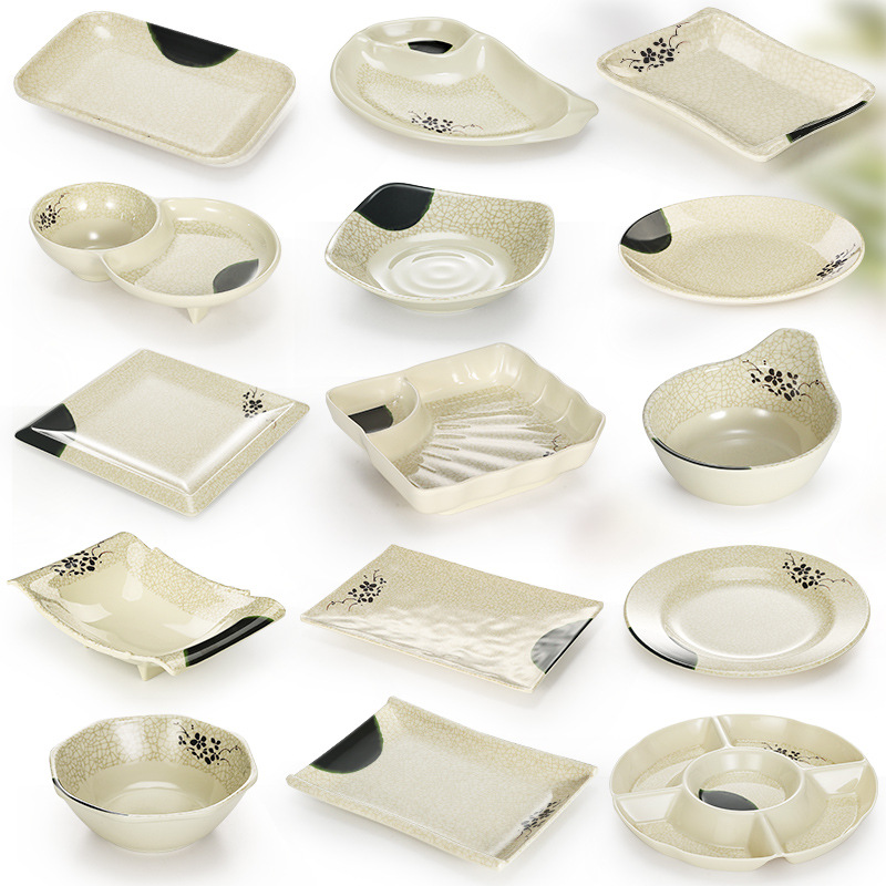 台湾のメラミンの冷たい料理の皿のアイデアの食器の異形の小皿のプラスチックの軽食の料理の皿のバーベキューの皿のおかずの商用