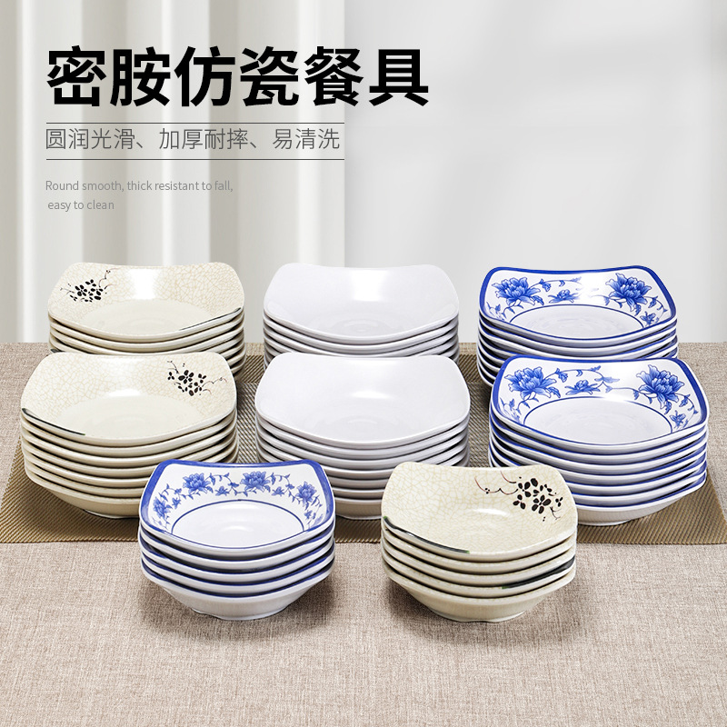 台徳メラミン食器直角プラスチック角箱皿業務用鍋料理皿セルフサービス焼肉皿展示皿