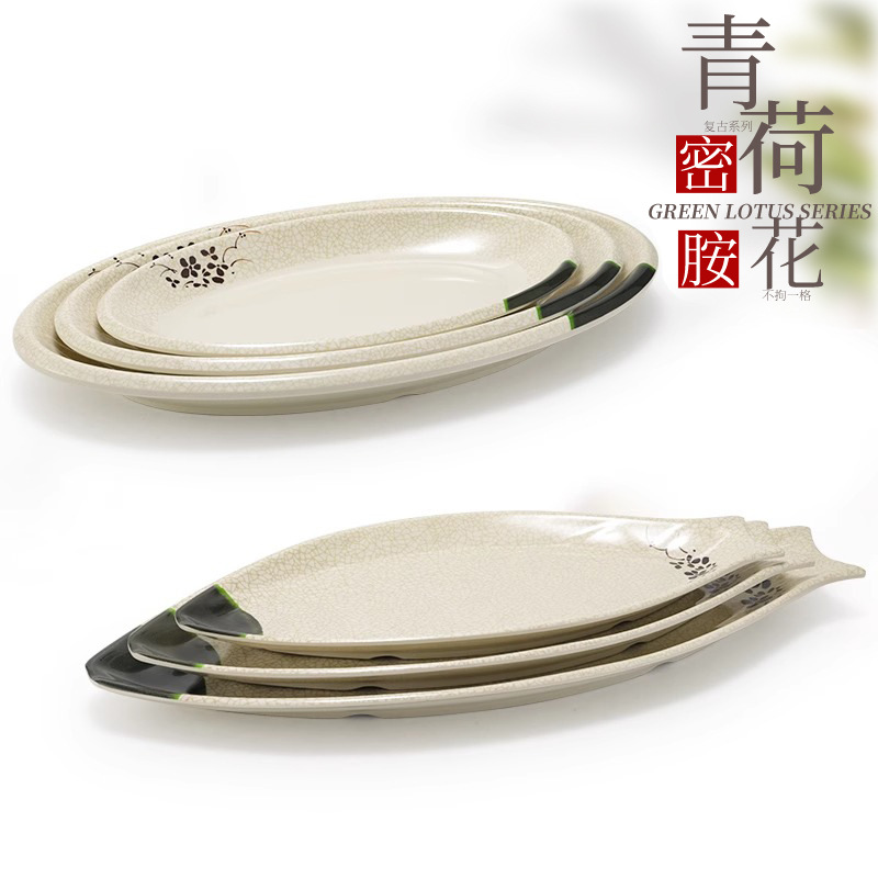 メラミンの魚の皿は商業的に磁器の楕円形のプラスチックの皿をまねます。