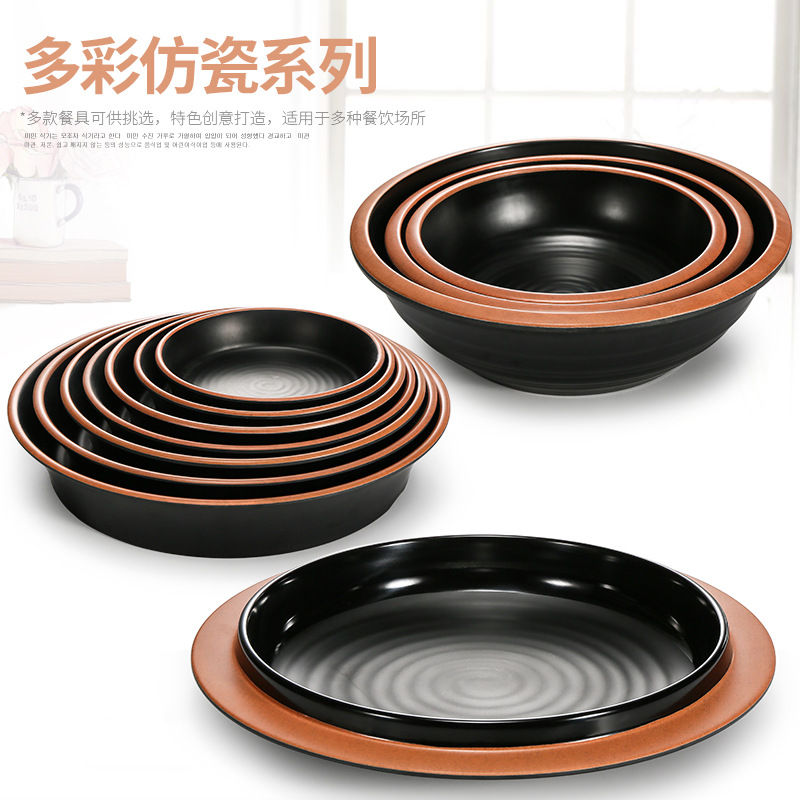 A5黒系円花和菓子バーベキュー皿プラスチックロブスター深皿厚い料理スープスパイラルタイプ深皿メラミン
