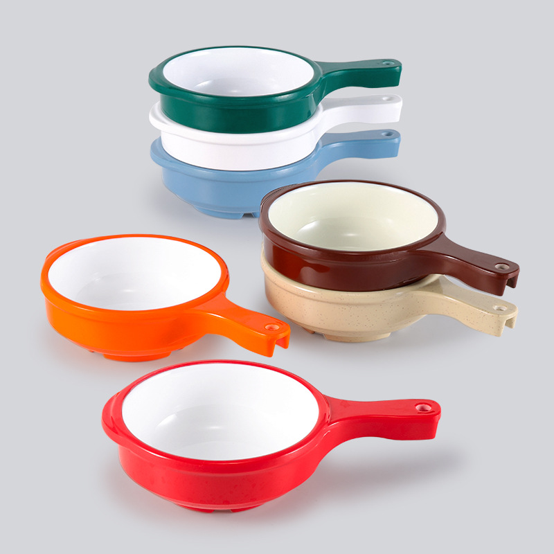 台湾のミミン碗のカラーのプラスチックは取っ手の韓国式を持って碗の料理の前菜の碗の調味料の碗を分けます。
