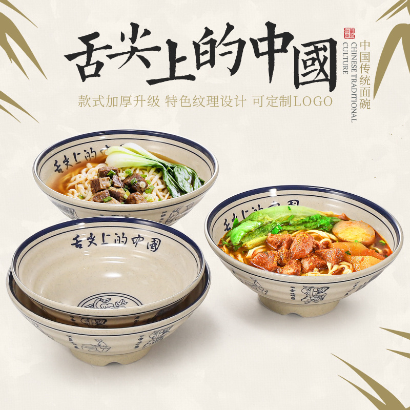麺館専用碗のメラミン麺のスープの碗の舌の先の上の中国のプラスチックのナットの粉の商用ラーメンの碗の闘笠の碗