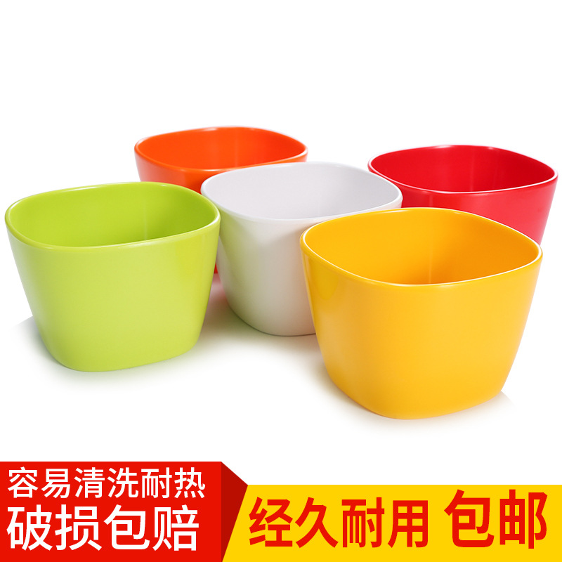 台徳カラーメラミン四角い碗のプラスチックの小さい碗は磁器の碗のレストランのファーストフードのご飯の碗のおかゆの碗のスープの碗の商用化に似せます。