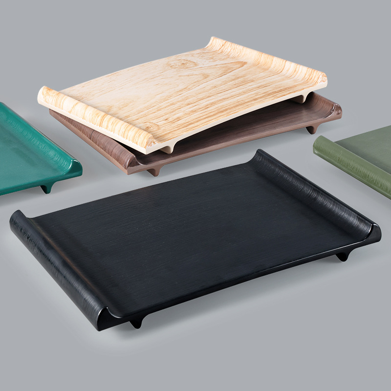 メラミントレー長方形取っ手付きプラスチック食事皿果物パン皿ホテル食堂レストラン端料理皿商用