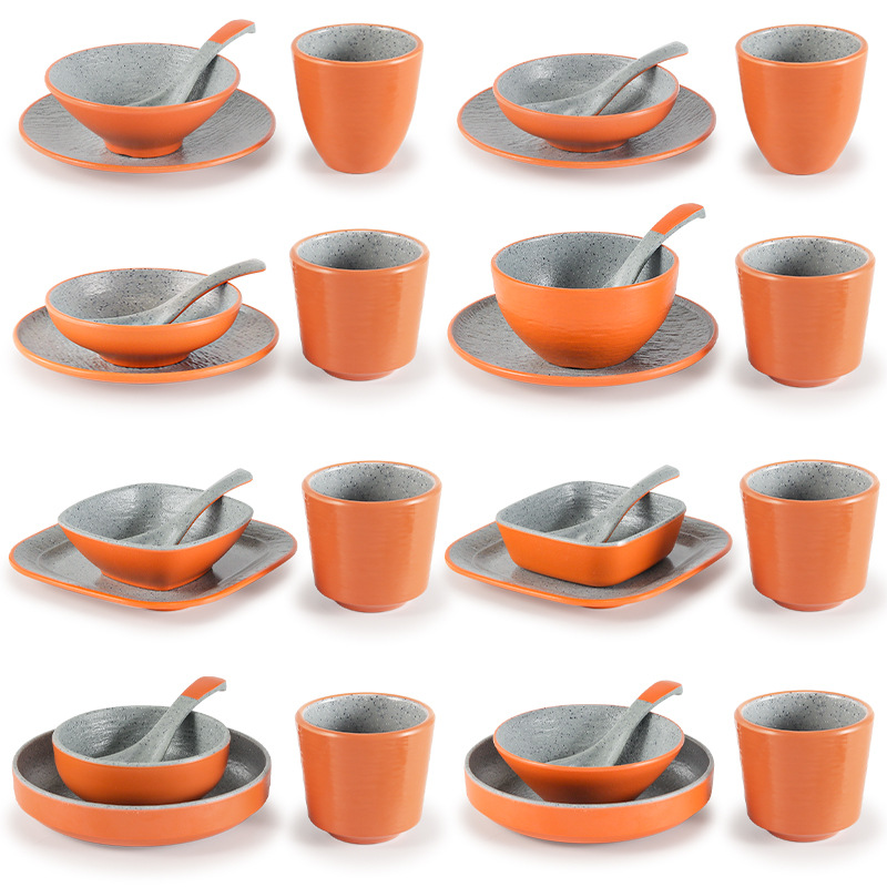 台徳密アミン日本式火鍋店はテーブルの4つのセットの食器のプラスチックのまねる磁器のホテルのセットの碗の皿の杯の商用を置きます。