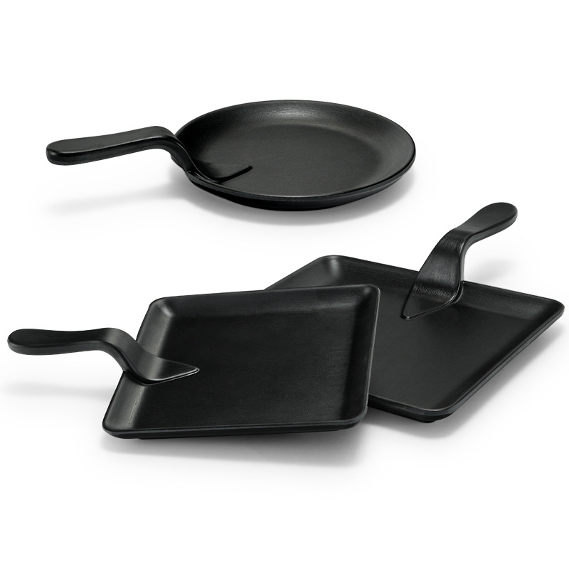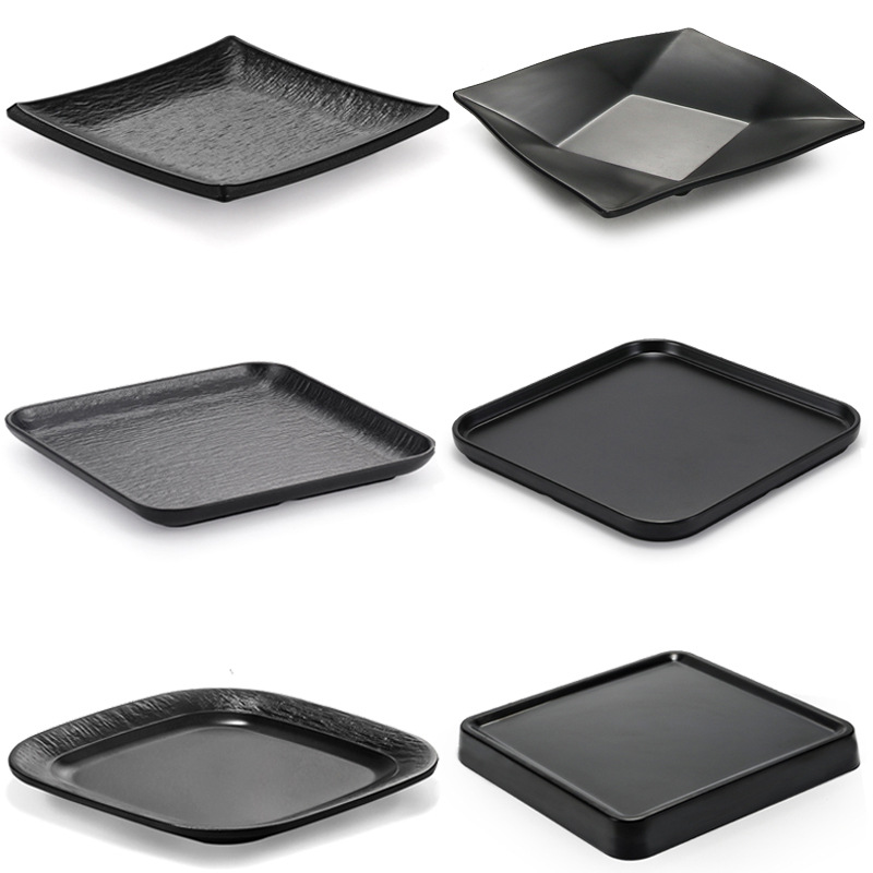 メラミンの皿は磁器の黒色の角皿のプラスチックの鍋の焼肉の軽食の皿のバーベキューの皿の平皿のトレーの業務用