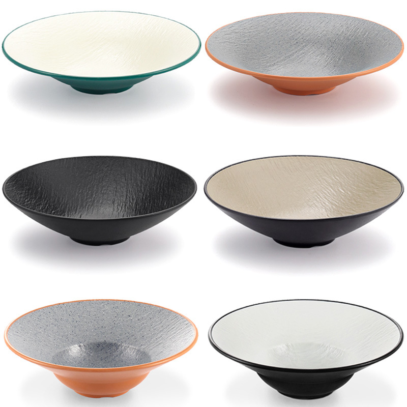 メラミンの浅い碗の笠の尖った底の大口の碗の洋食のスープの碗の麦わら帽子の碗のサラダの碗の冷たい皮は麺の碗をかき混ぜます。