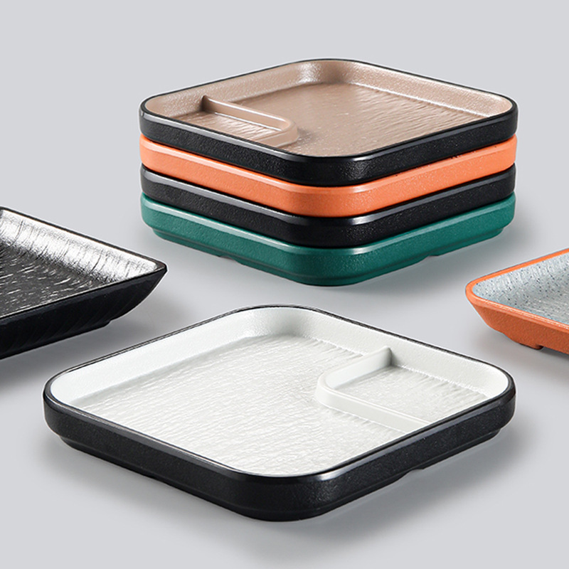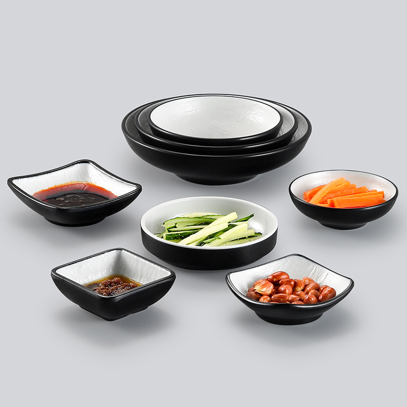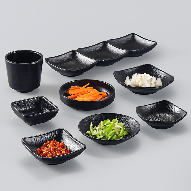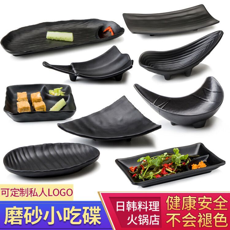 黑色创意小吃盘子塑料仿瓷日韩式餐厅火锅烧烤店密胺凉菜碟子商用