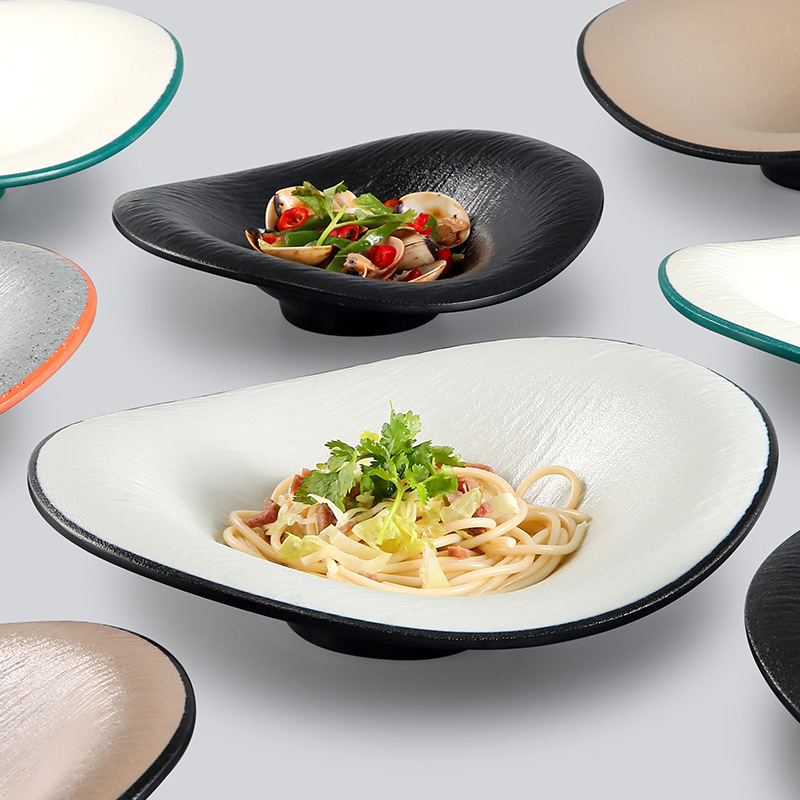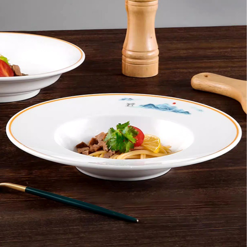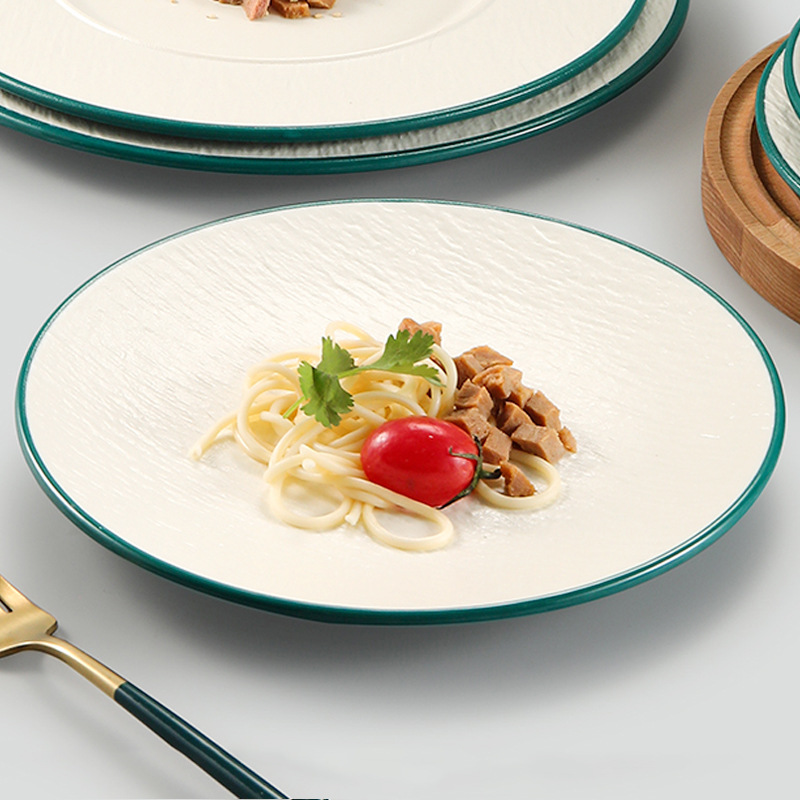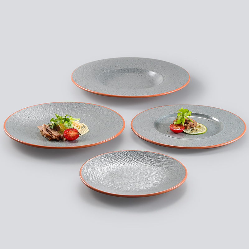台湾のメラミンの皿は磁器の食器の洋食の円形の平の皿のデザートの皿のパスタの皿のステーキの食事の皿の商用化を模倣します。
