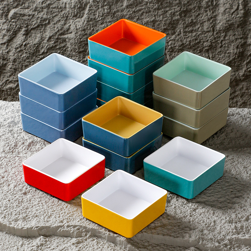 テーブルメラミン食器鍋レストランプレート正方形おかずプレート模造磁器商業積み重ね小さな正方形ボックス