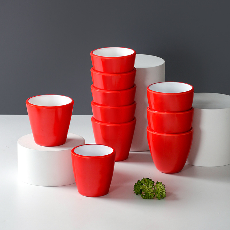 テーブルメラミン食器赤いカップ商業レストランホテル鍋落下防止樹脂カップ模造磁器ウォーターカップティーカップ