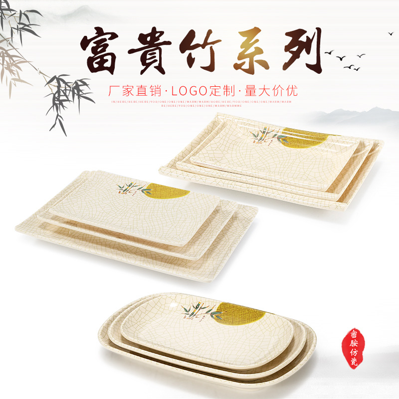 A5 メラミン腸パッケージプレート富竹長方形模造磁器プラスチックファーストフードレストラン冷菜バーベキュースナックプレート商業用