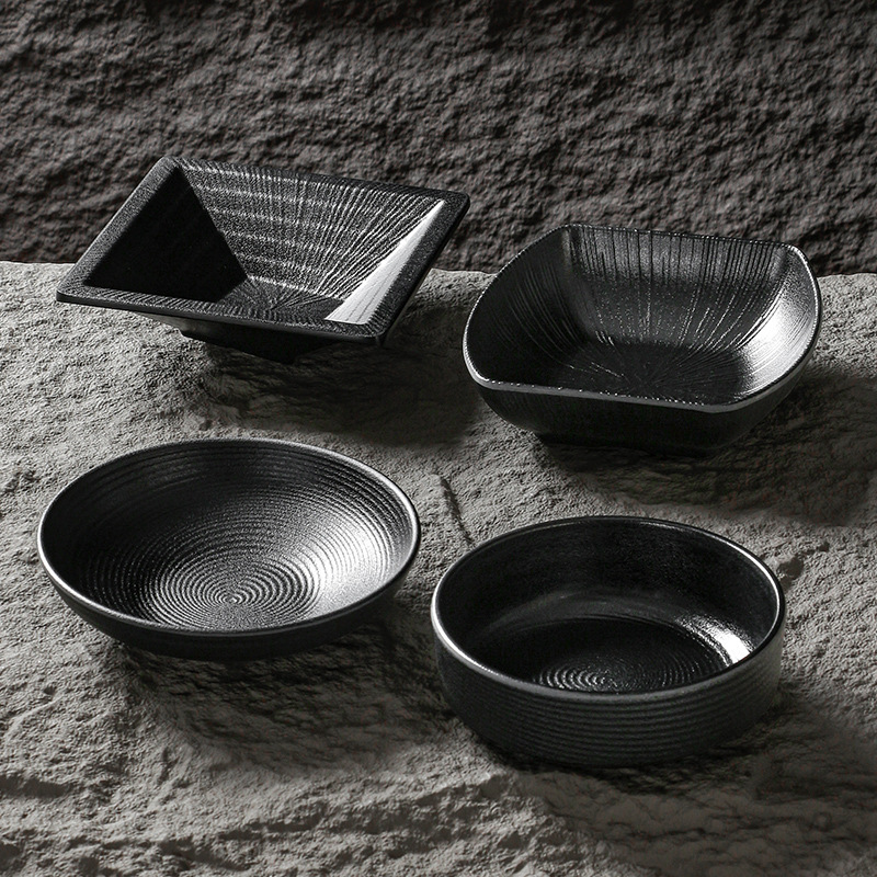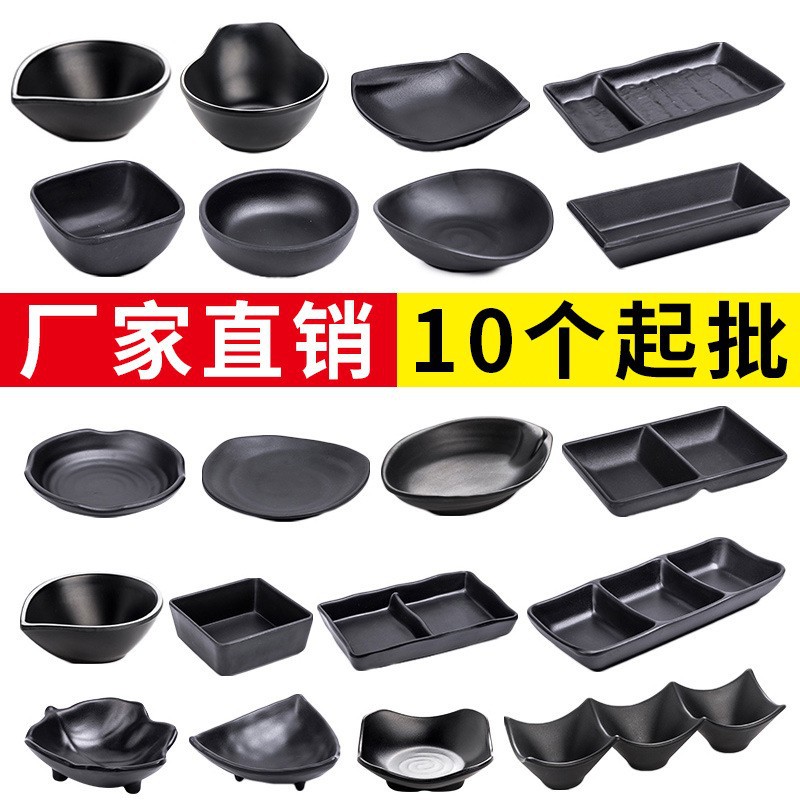 テーブルメラミン食器小さなディッシュプレート黒調味料プレートバーベキューディッププレート商業バーベキュースナックプレート