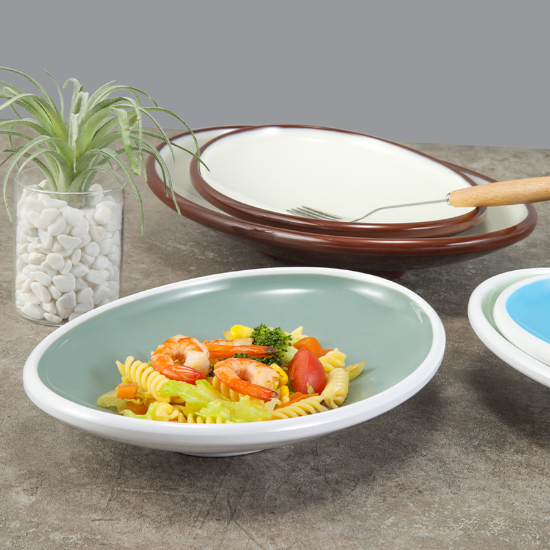 テーブルメラミンクリエイティブオーバルスナックプレート北欧レストラン特殊形状プレートコールドディッシュプレート商業模造磁器食事