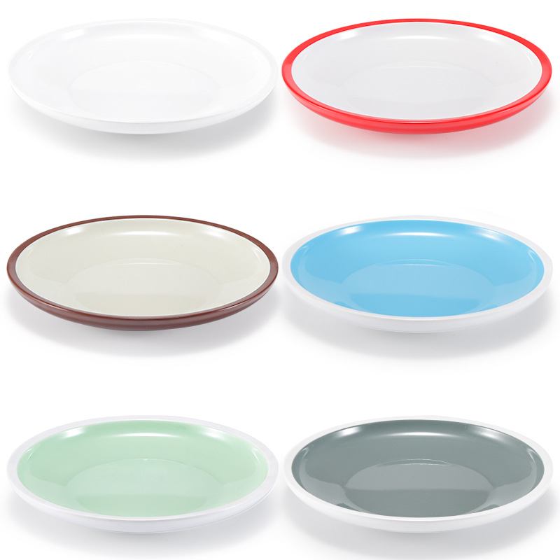 テーブルメラミン食器プレートラウンドフラットプレートサーモン刺身寿司プレート模造磁器ラウンドプレートデザートプレート