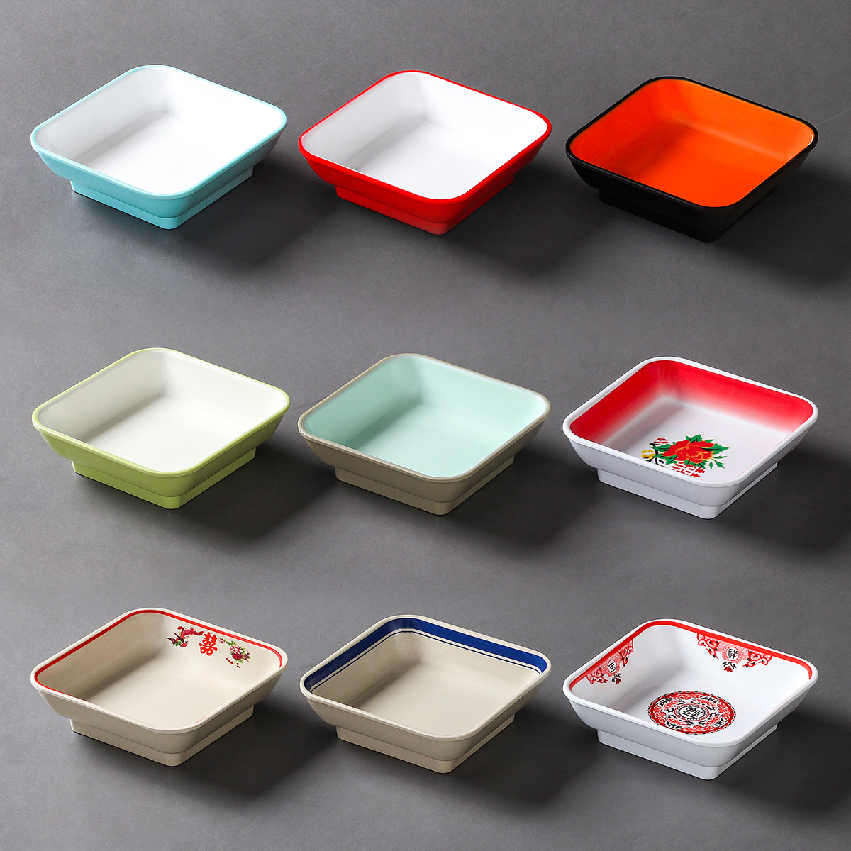 テーブルメラミン食器プレート鍋レストランバーベキュー調味料ソースプレート商業模造磁器正方形冷菜スナックプレート