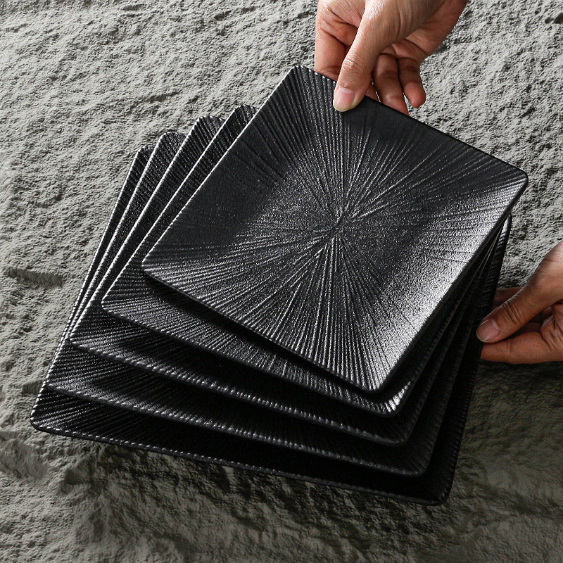 テーブルメラミン食器黒皿正方形チャーハンチャーハンファーストフードプレート鍋皿バーベキュープレート商業用