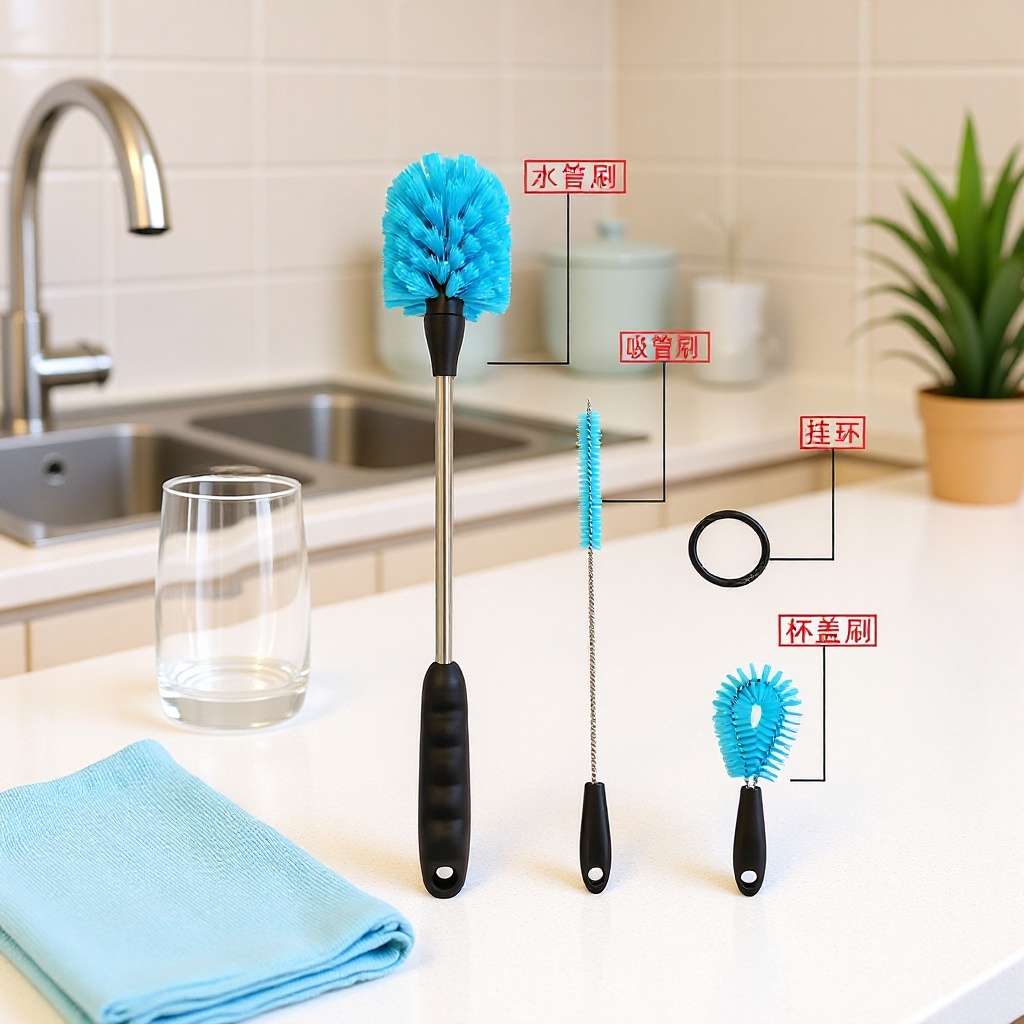 メーカー卸売りカップブラシ三点セット死角なし清潔カップカップ蓋ストローブラシ多機能清潔ブラシセット
