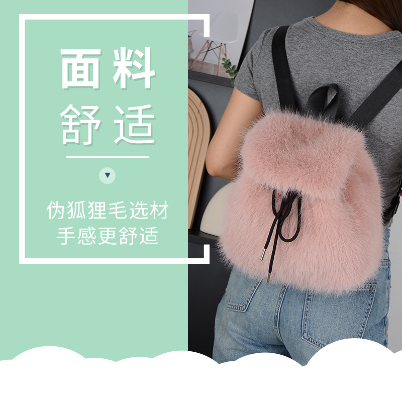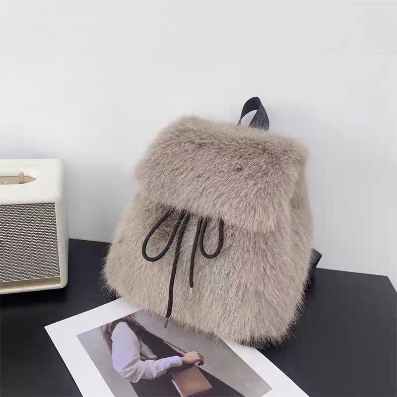 新しいファッションの爆発物はキツネの毛の女性のリュックサックに似ています。