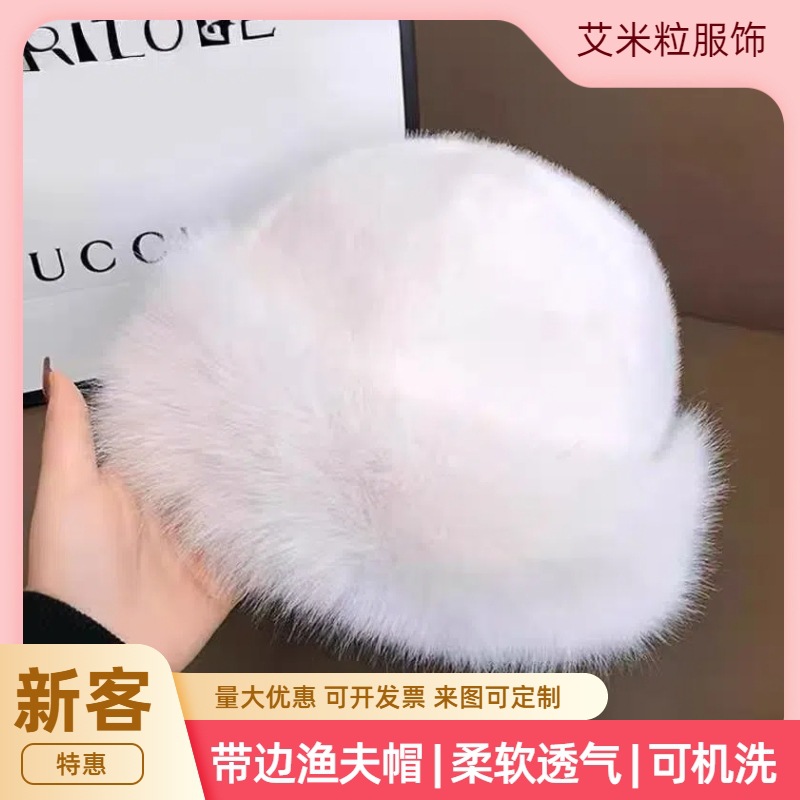 冬の毛皮帽子、女性用秋冬防寒帽子、白と黒、顔が小さく見える漁師帽、高級感