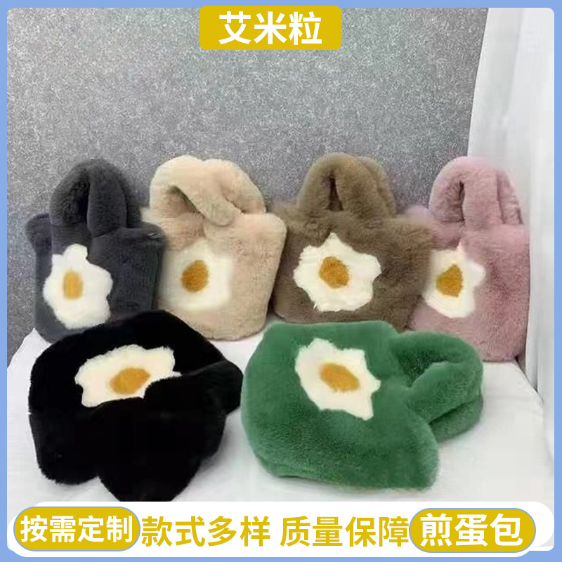 クロスボーダーレディースバッグひまわりぬいぐるみバッグハンドキャリーポーチエッグスモールショルダーバッグ韓国風毛皮ラッキーラビットファーバッグ大容量