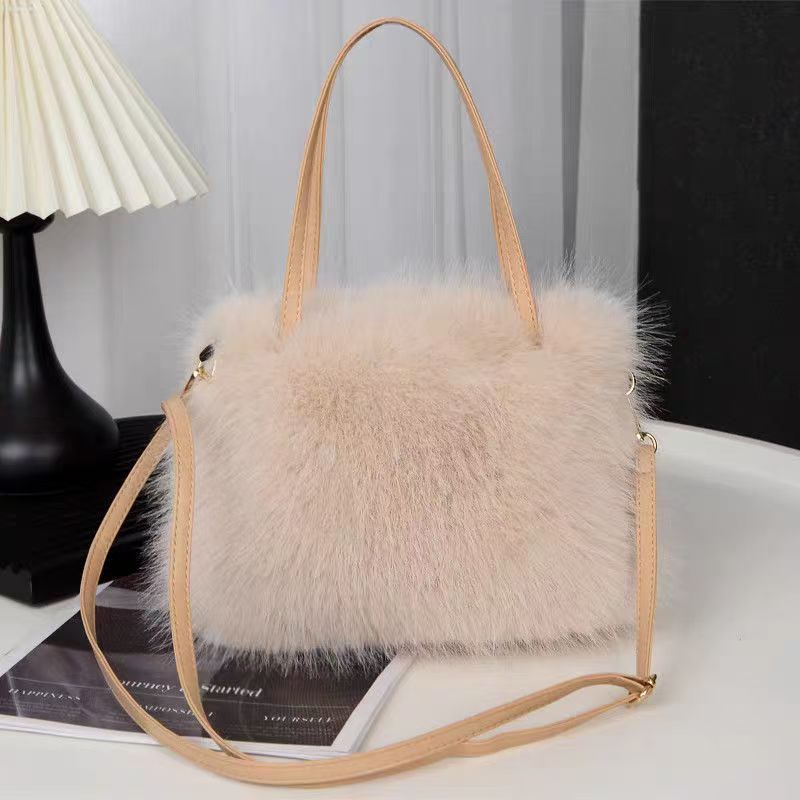 2024新型ファッションシングル肩斜めショルダー毛羽バッグ純色シンプルな女性カバン狐毛小托カード角バッグ
